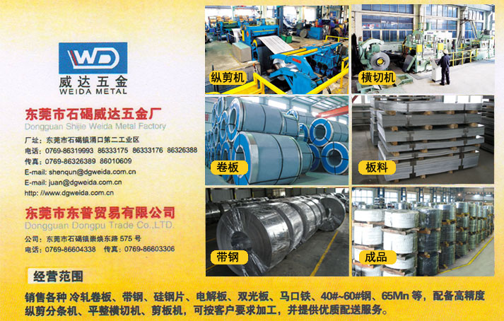 經營范圍:銷售各種冷軋卷板、帶鋼、硅鋼片、電解板、雙光板、馬口鐵、40-60#鋼、65Mn等,配備高精度縱剪分條機、平整橫切機、剪板機、可按客戶要求加工,并提供優(yōu)質配送服務。